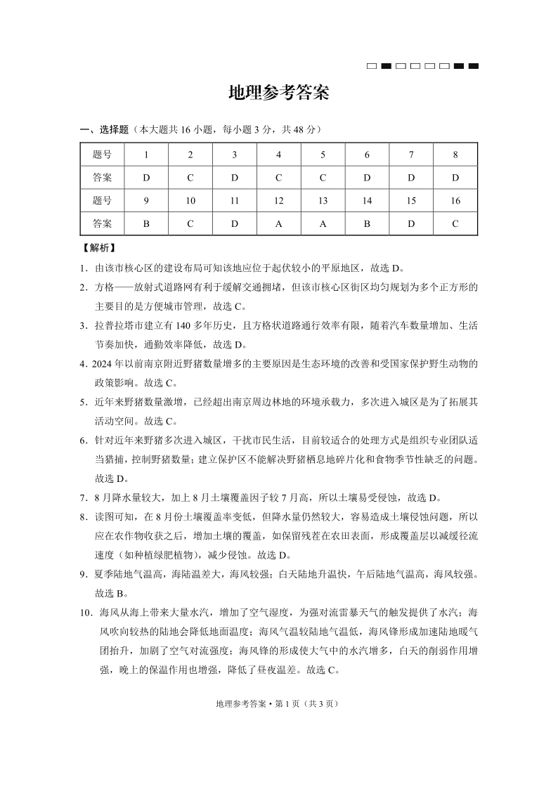 云南师范大学附属中学2025届高考适应性月考卷(七)地理答案