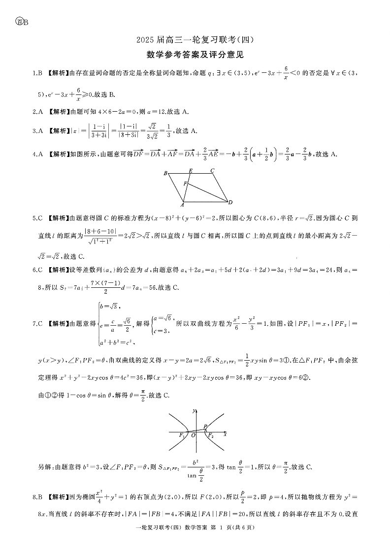 河北省区域高中2025届高三年级一轮复习联考(四)数学B答案
