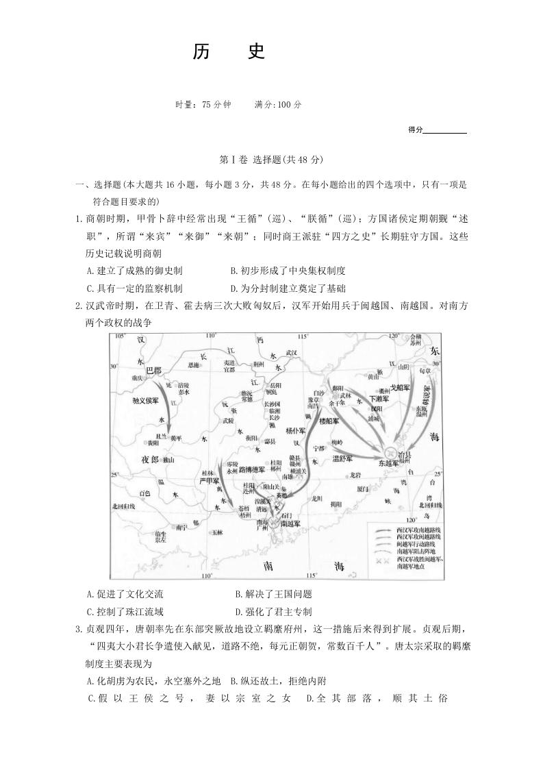 湖南省长沙市第一中学2025届高三上学期月考试卷(四)历史