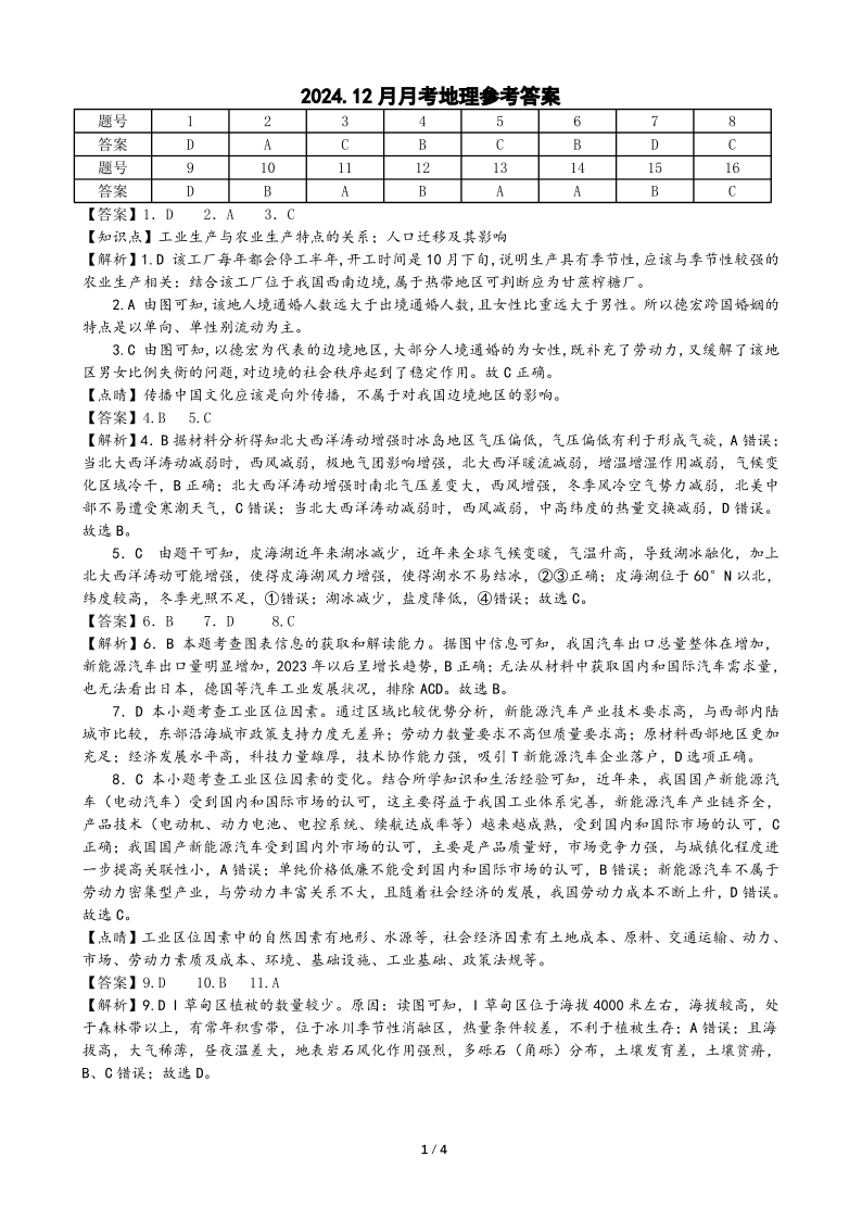 四川省成都市石室中学 2025 年高考适应性测试演练模拟考试地理答案