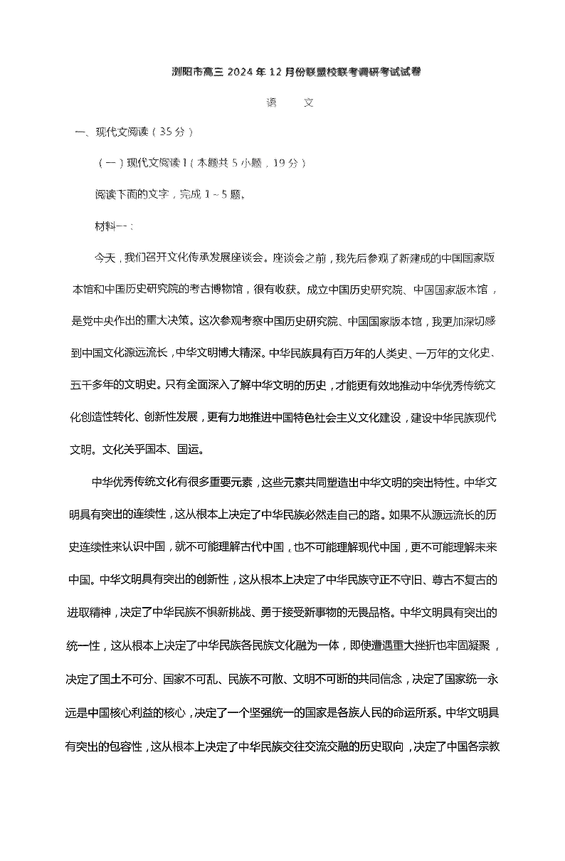 湖南省浏阳市联盟校2025届高三上学期12月联考语文