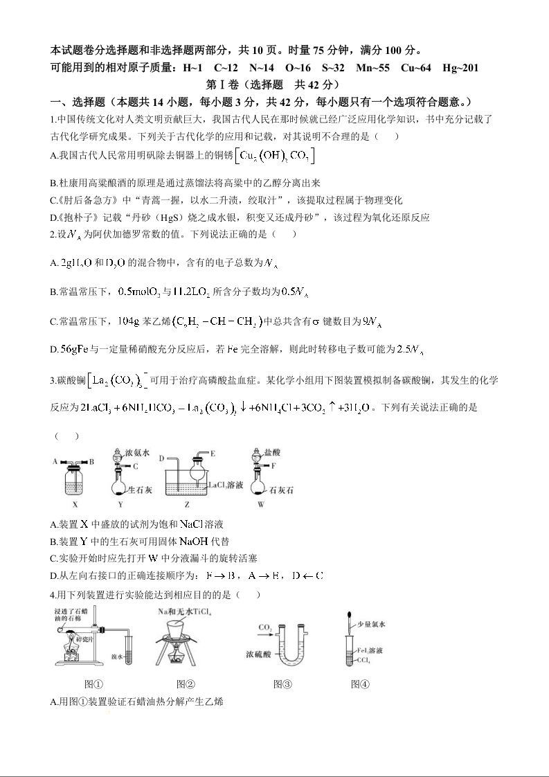 湖南省长沙市长郡中学2025届高三上学期月考(四)化学+答案