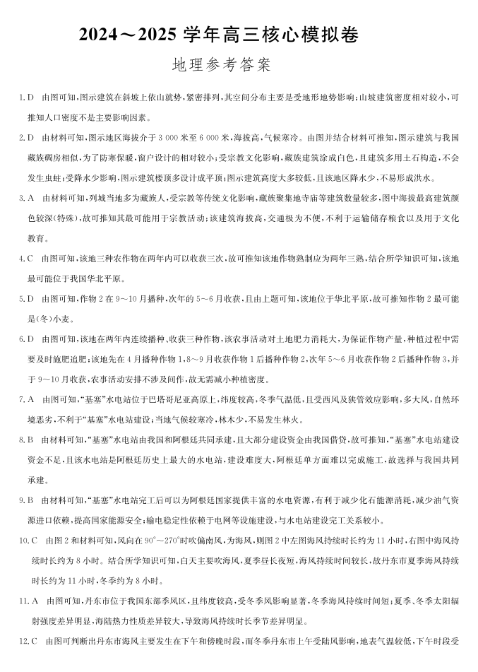 湖北省黄冈市黄梅县育才高级中学2025届高三12月核心模拟预测地理答案