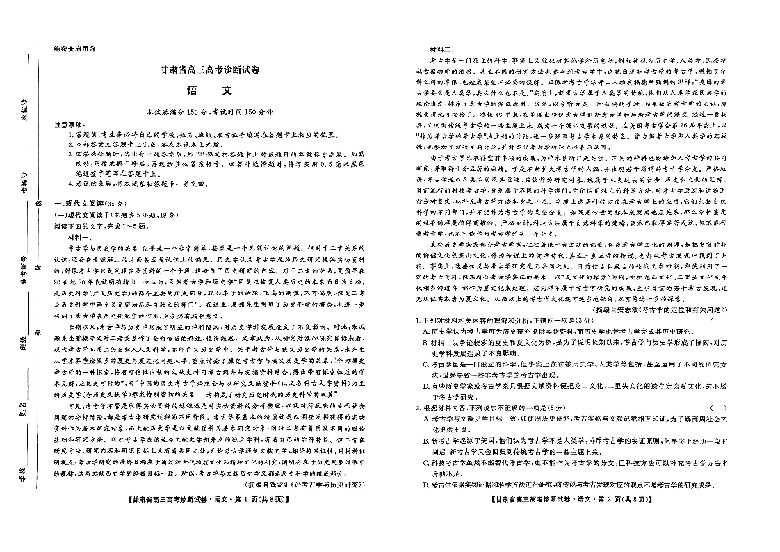 甘肃省2025届高三上学期12月高考诊断语文+答案