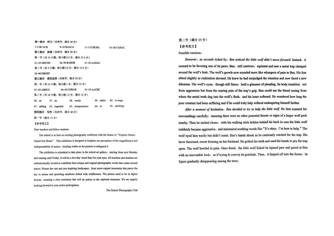 重庆市第一中学校2025届高三上学期12月月考英语答案