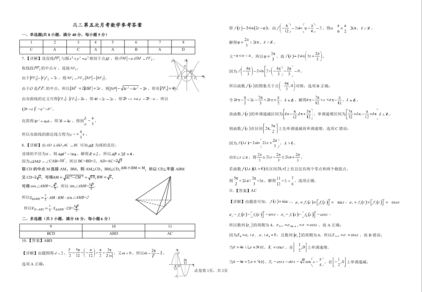 宁夏回族自治区银川一中2025届高三上学期第五次月考数学答案