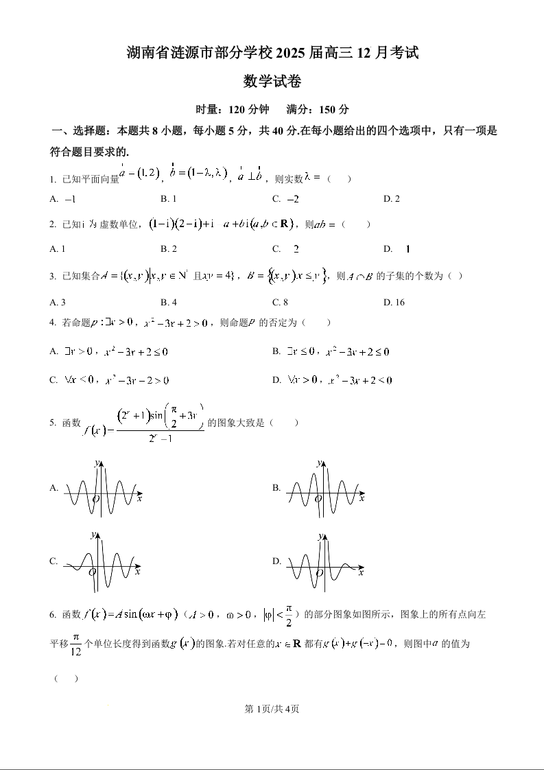 湖南省娄底市涟源市部分学校2025届高三上学期12月月考数学(原卷版)