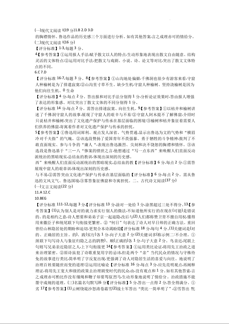黑龙江省大庆中学2025届高三上学期第二次模拟考试语文答案
