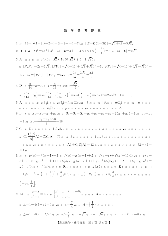 河北省邢台市2025届高三上学期第二次联考数学答案