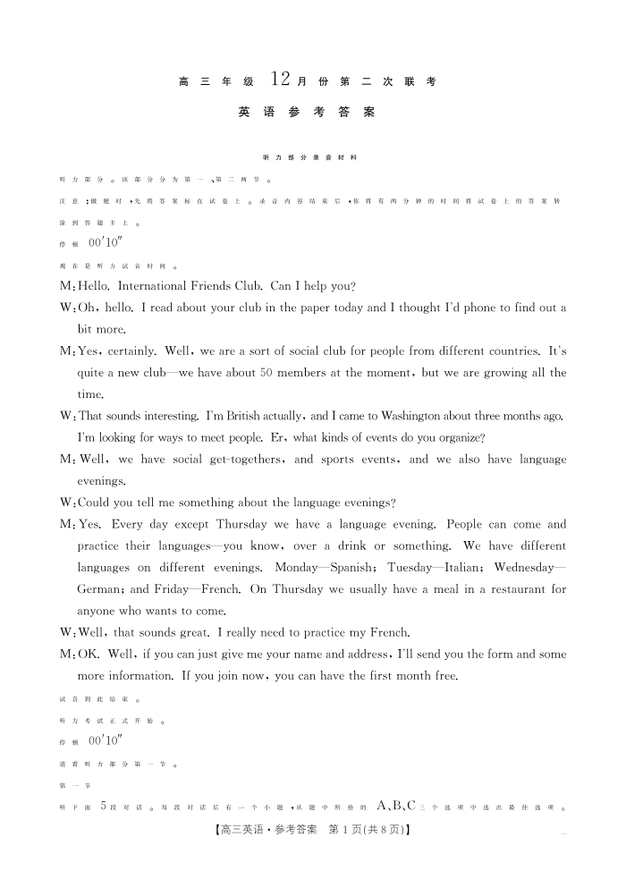 河北省邢台市2025届高三上学期第二次联考英语答案