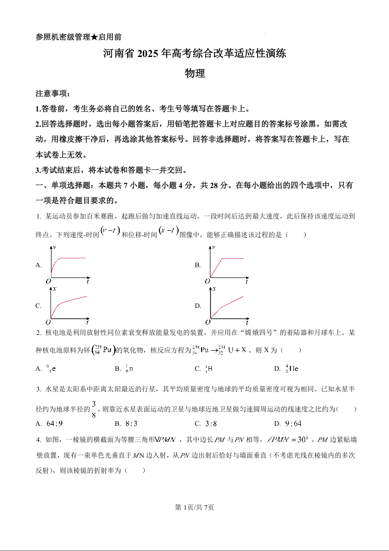新八省联考2025年河南省高考综合改革适应性演练物理(原卷版)