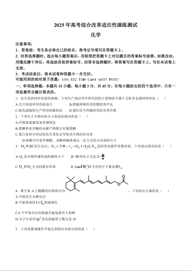 【四川卷】新八省联考2025年四川省高考综合改革适应性演练化学