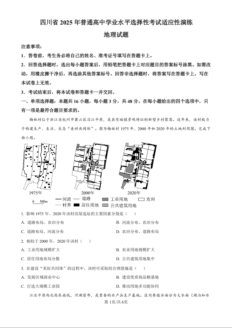【四川卷】新八省联考2025年四川省高考综合改革适应性演练地理(原卷版)