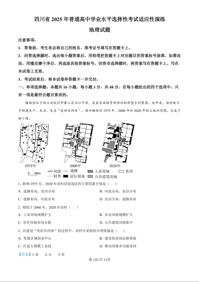 【四川卷】新八省联考2025年四川省高考综合改革适应性演练地理(精品解析版)