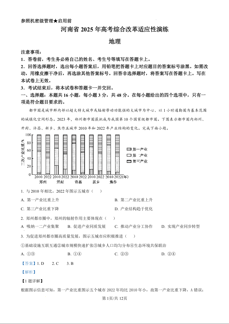 新八省联考2025年四川省高考综合改革适应性演练地理(精品解析版)