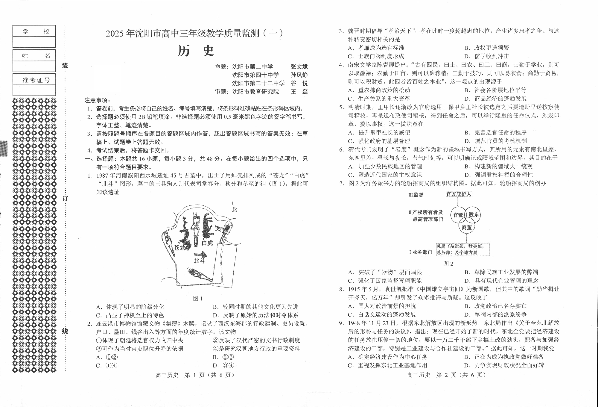 辽宁省沈阳市2025年高中三年级教学质量监测(一模)历史