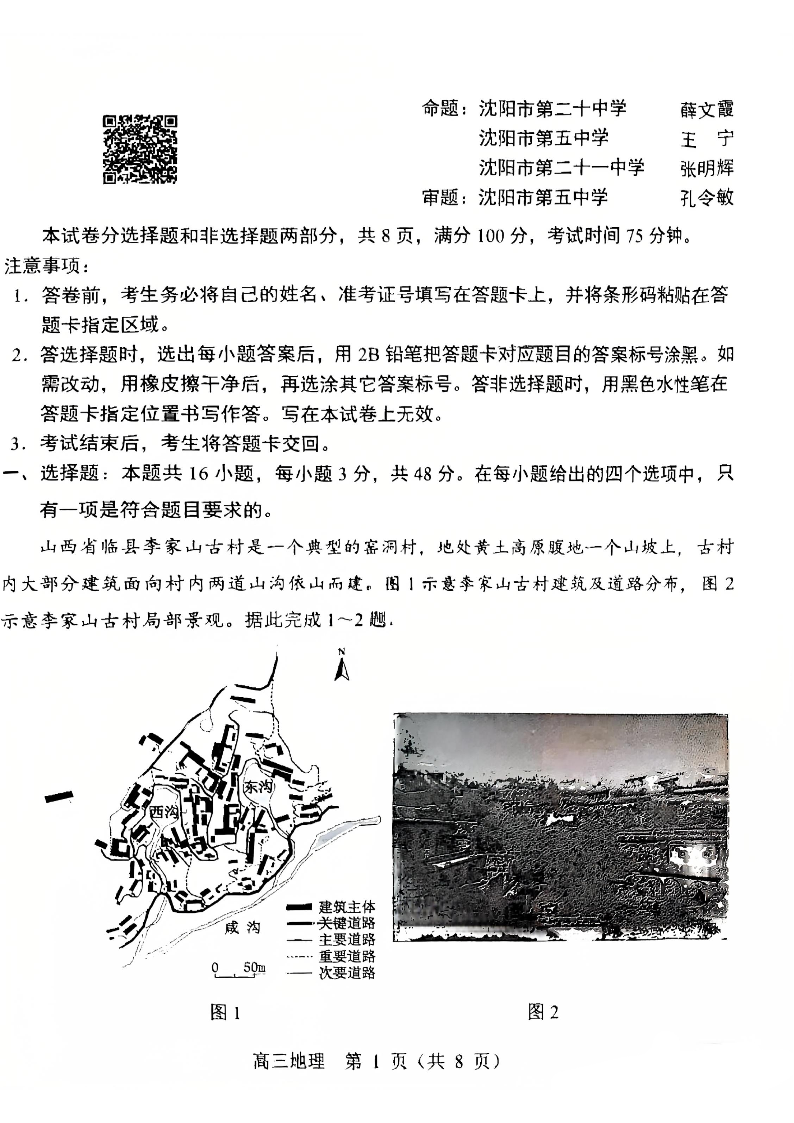 辽宁省沈阳市2025年高中三年级教学质量监测(一模)地理