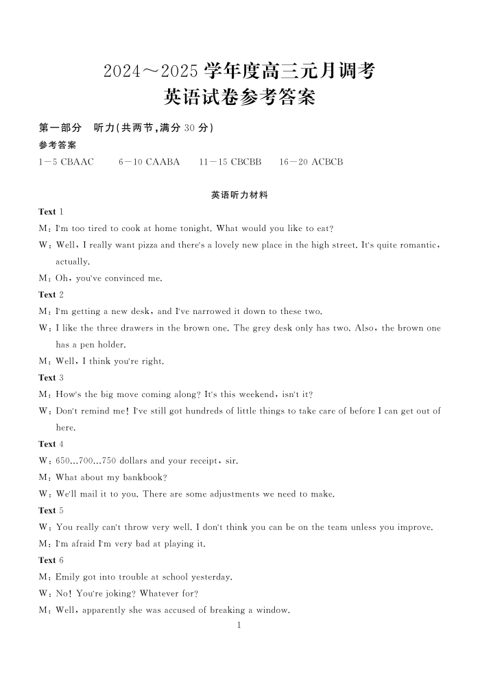 湖北省武汉市江岸区2025届高三上学期1月期末考试英语答案