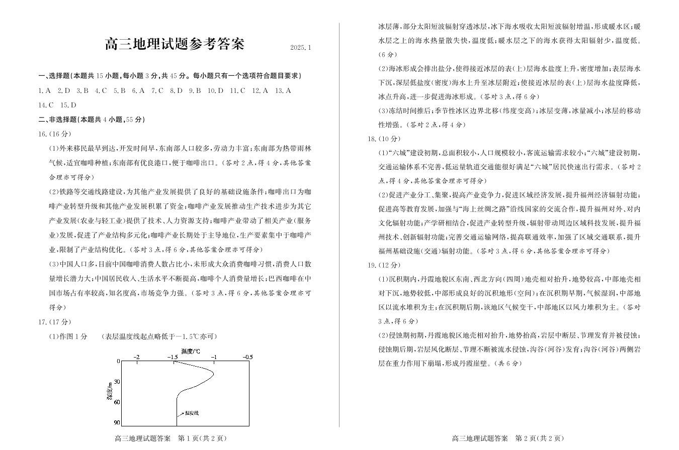 山东省滨州市2025届高三上学期1月期末考试地理答案