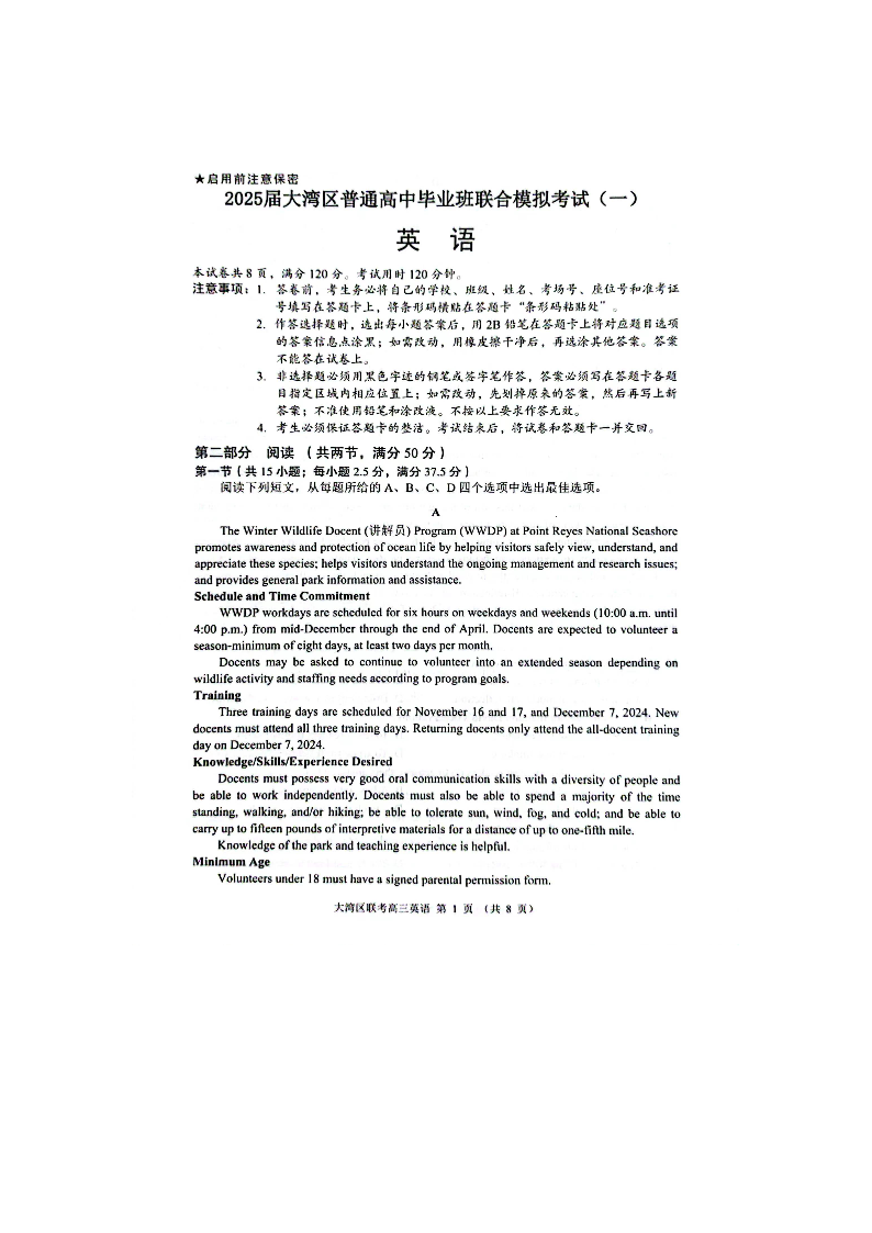 广东省大湾区普通高中2024-2025学年上学期毕业年级联合模拟英语