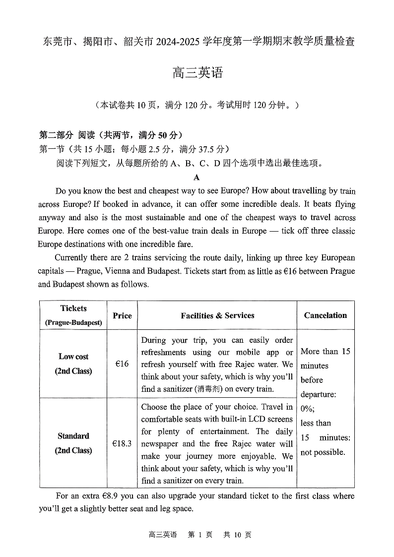广东省东莞市、揭阳市、韶关市2024-2025学年上学期高三期末考试英语+答案
