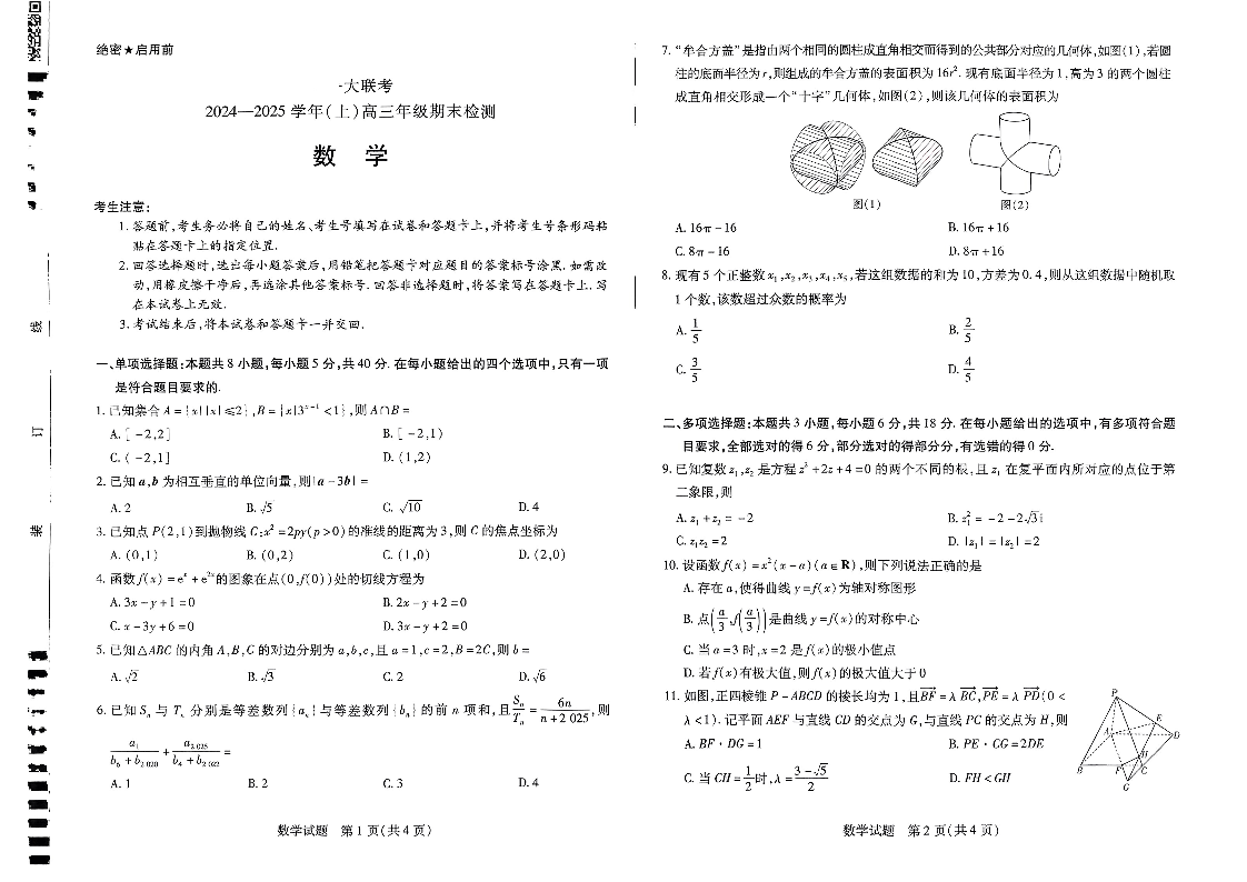 河南省区域高中2024-2025学年上学期1月高三期末考试数学