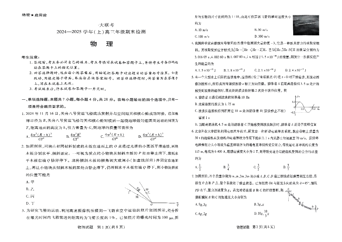 河南省区域高中2024-2025学年上学期1月高三期末考试物理