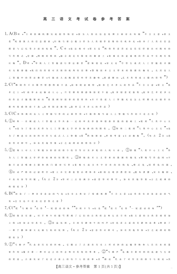 辽宁省部分学校2024-2025学年上学期1月高三期末联考语文答案