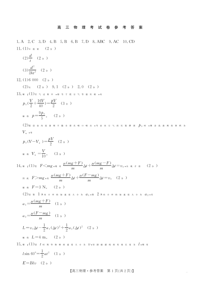 辽宁省部分学校2024-2025学年上学期1月高三期末联考物理答案