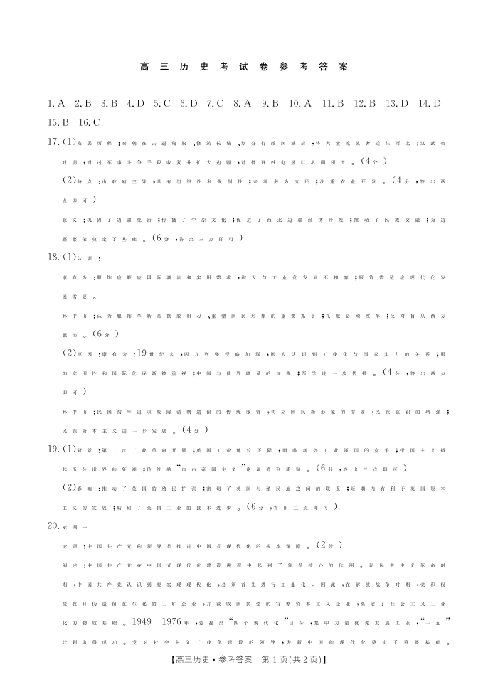 辽宁省部分学校2024-2025学年上学期1月高三期末联考历史答案