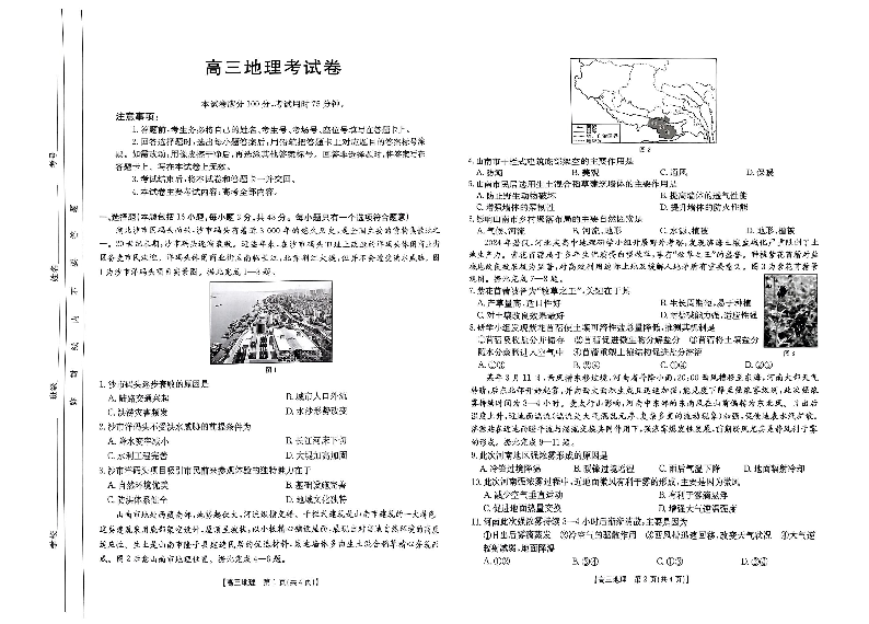 辽宁省部分学校2024-2025学年上学期1月高三期末联考地理