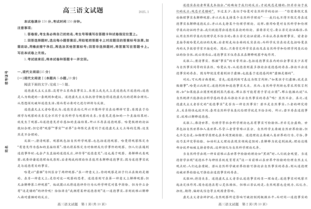 山东省德州市2024-2025学年上学期1月高三期末考试语文