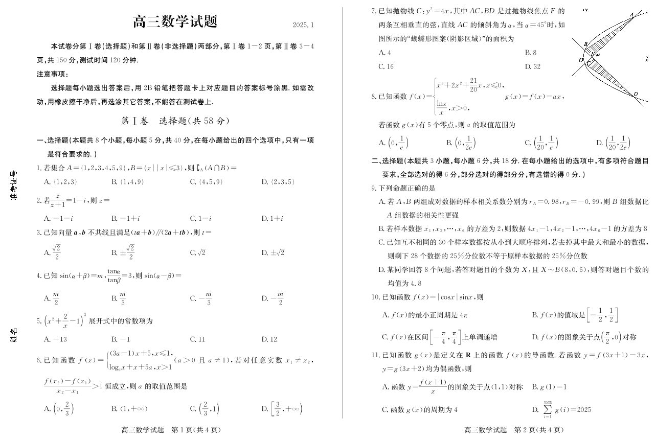 山东省德州市2024-2025学年上学期1月高三期末考试数学