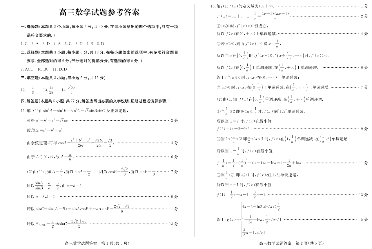 山东省德州市2024-2025学年上学期1月高三期末考试数学答案