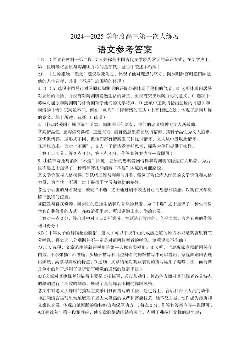 河南省三门峡市2024-2025学年上学期1月高三期末考试语文答案