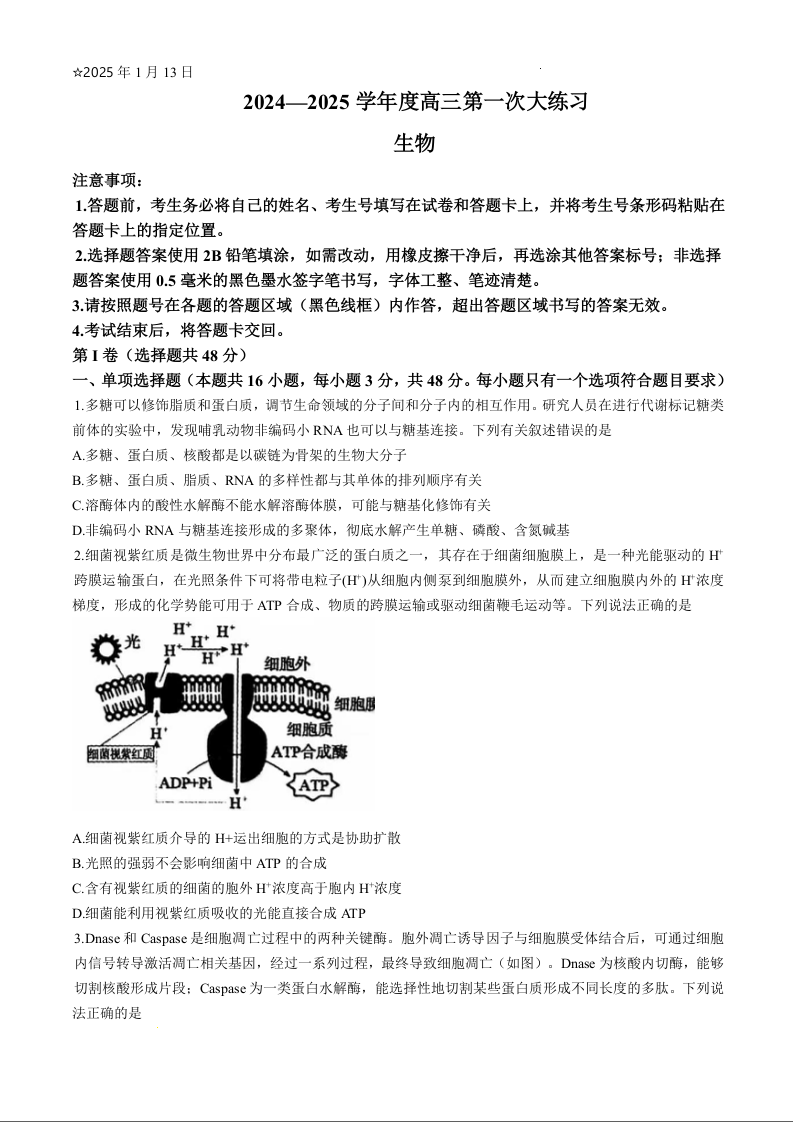河南省三门峡市2024-2025学年上学期1月高三期末考试生物+答案