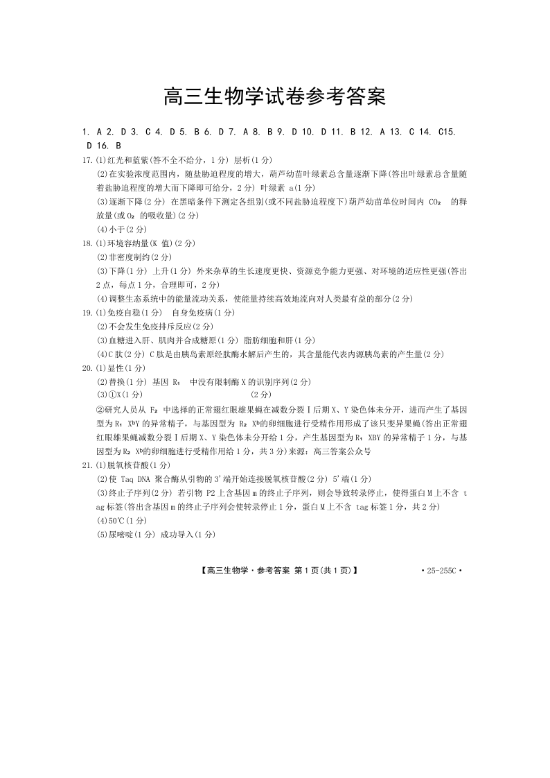 甘肃省区域高中2024-2025学年上学期1月高三联考生物答案