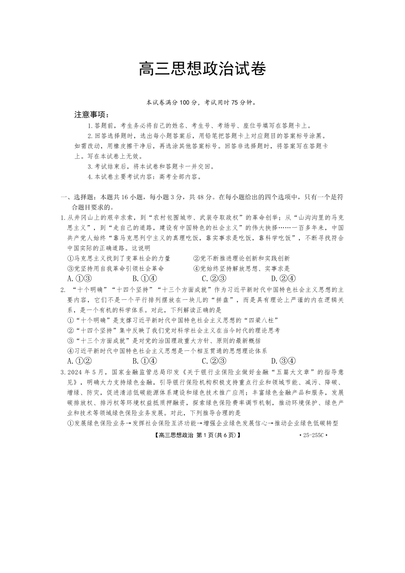 甘肃省区域高中2024-2025学年上学期1月高三联考政治+答案