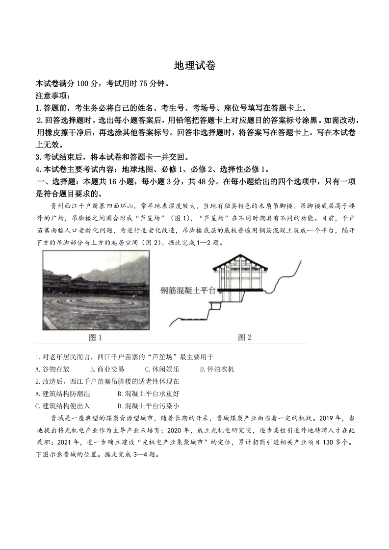 辽宁省抚顺市省重点高中六校协作体2025届高三上学期1月期末考试(二模)地理+答案