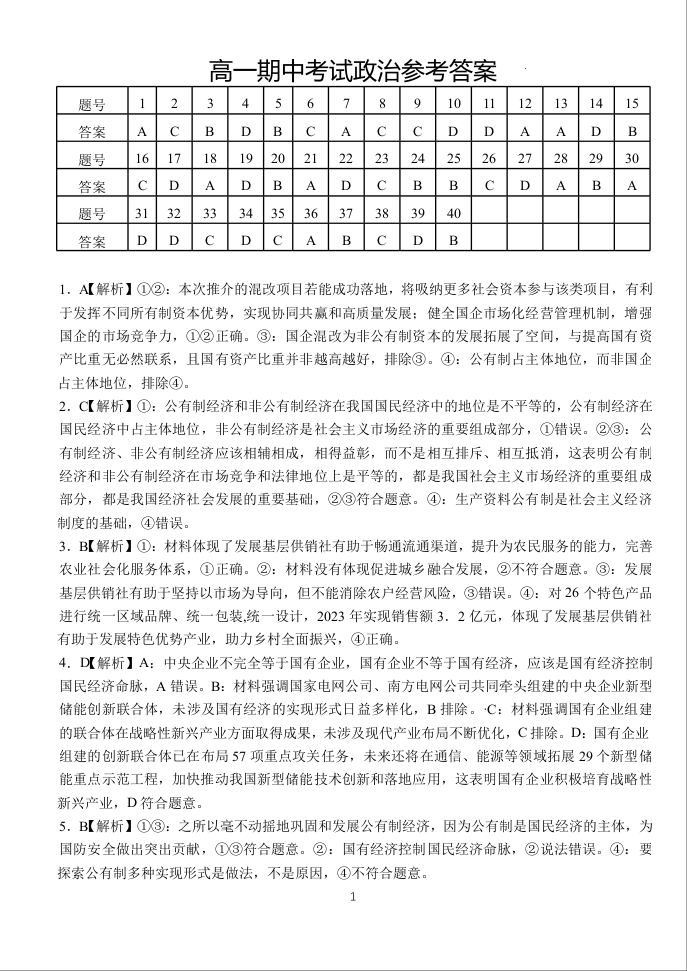 湖北省沙市中学2024—2025学年度上学期2024级期中考试政治答案