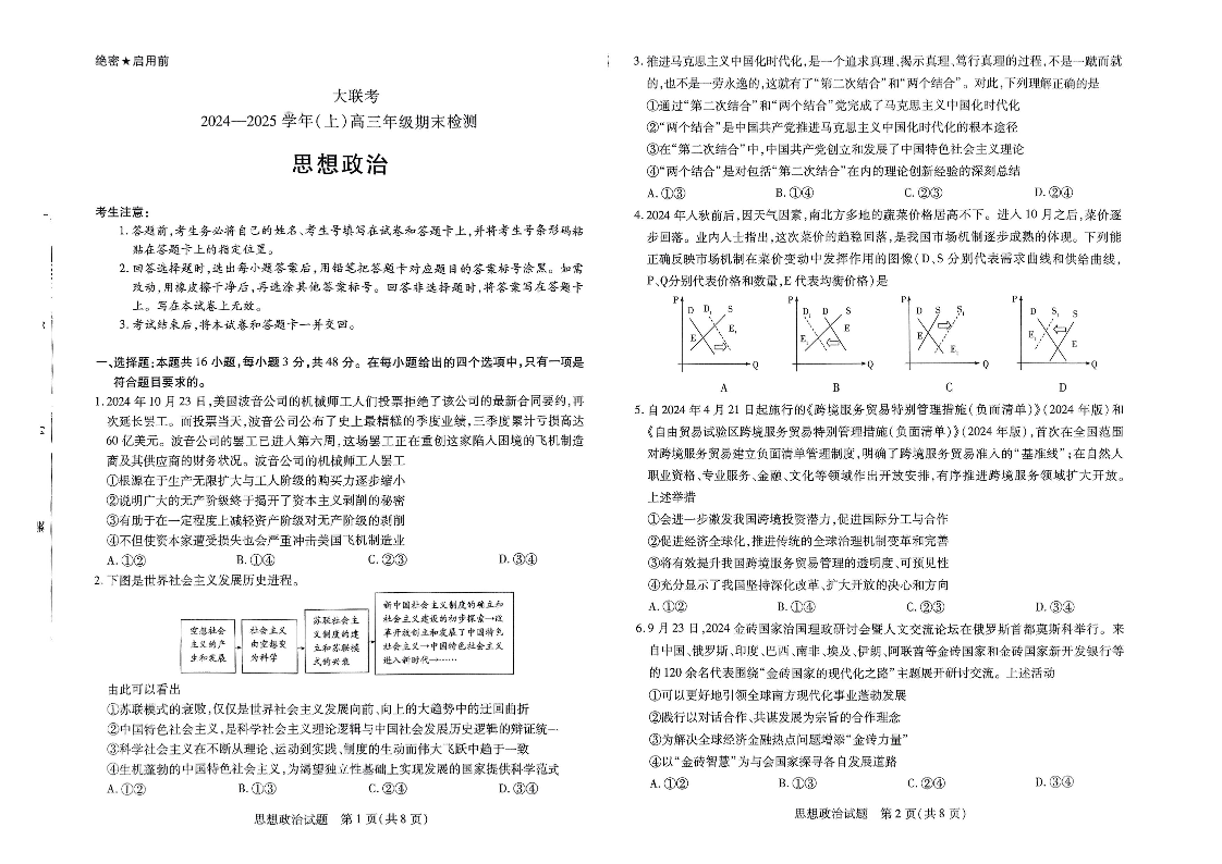 河南省天一大联考2025届高三上学期1月期末考试政治