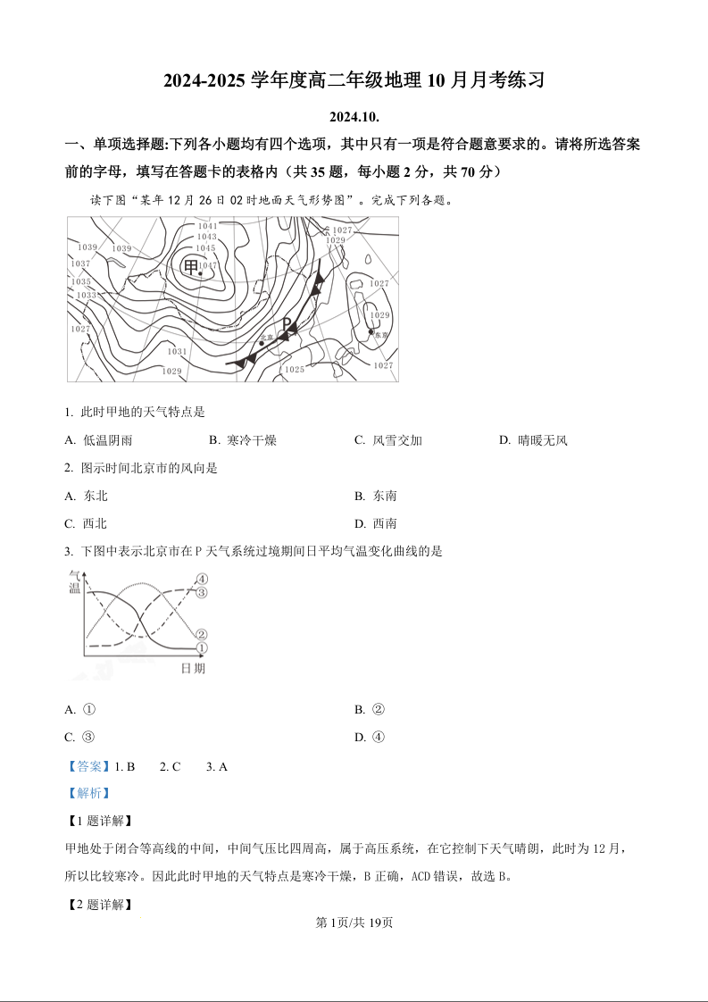 北京市海淀区北京理工大学附属中学2024—2025学年度第一学期高二年10月月考地理(解析版)