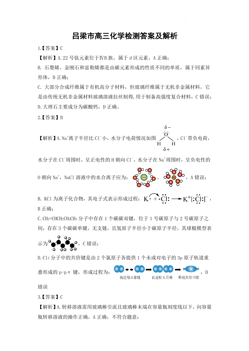 山西省吕梁市2025届高三上学期1月期末调研考试化学答案