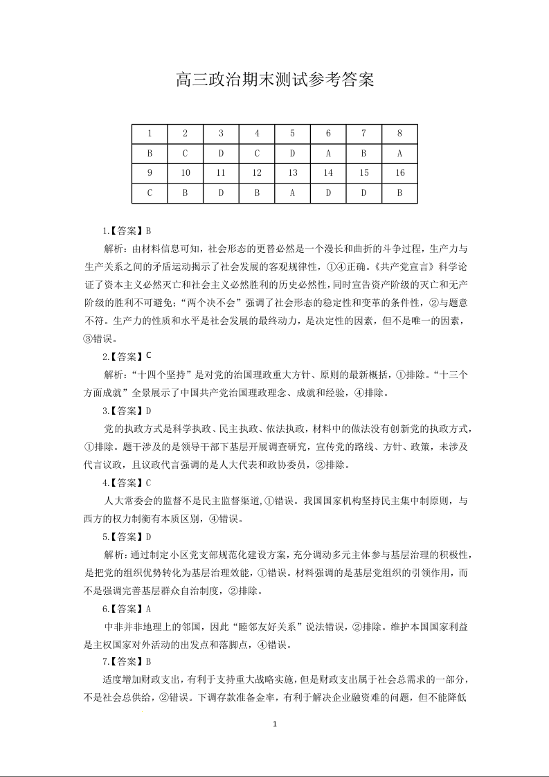 山西省吕梁市2025届高三上学期1月期末调研考试政治答案