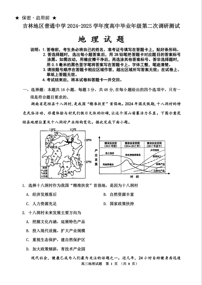 吉林省普通中学2024-2025学年上学期高三第二次调研测试地理