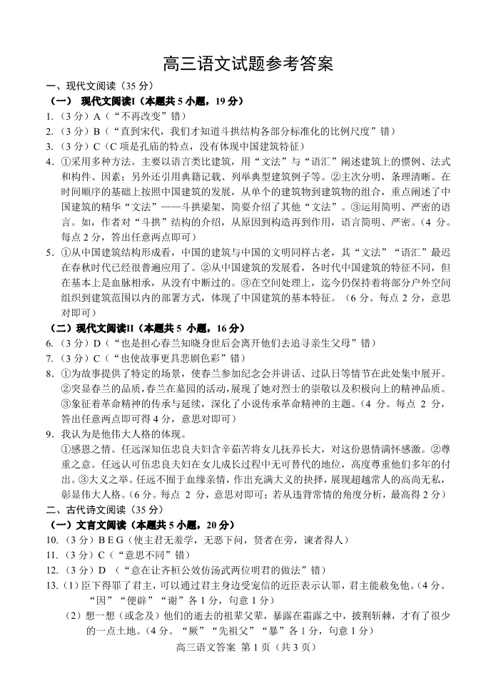 山东省菏泽市2024-2025学年上学期上学期1月高三期末考试语文答案
