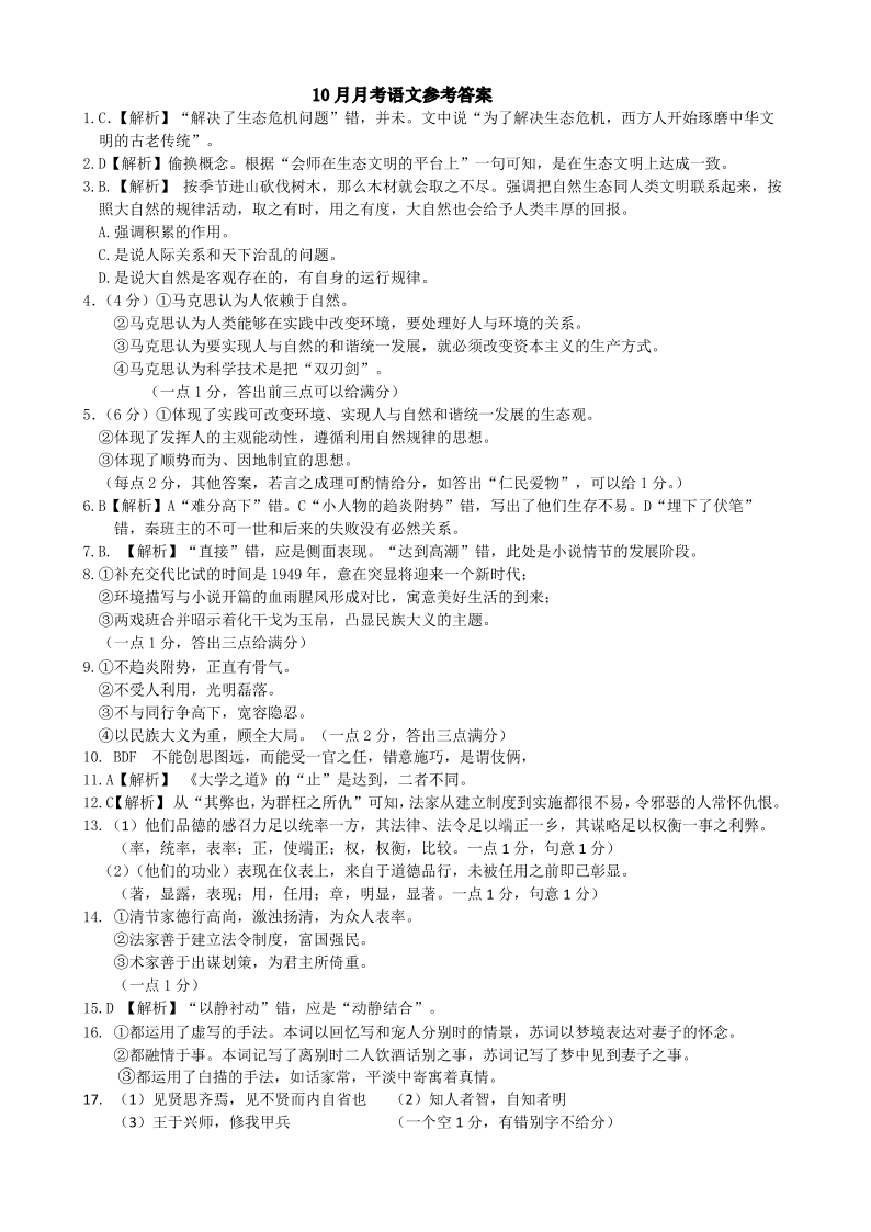 黑龙江省龙东联盟2023 级高二年级上学期 10 月月考语文答案