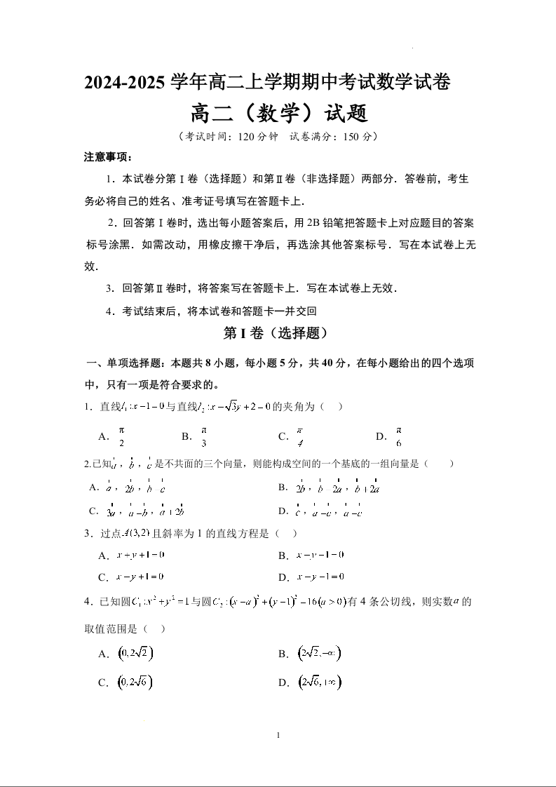 吉林省2024-2025学年度友好学校高二年级期中考卷数学