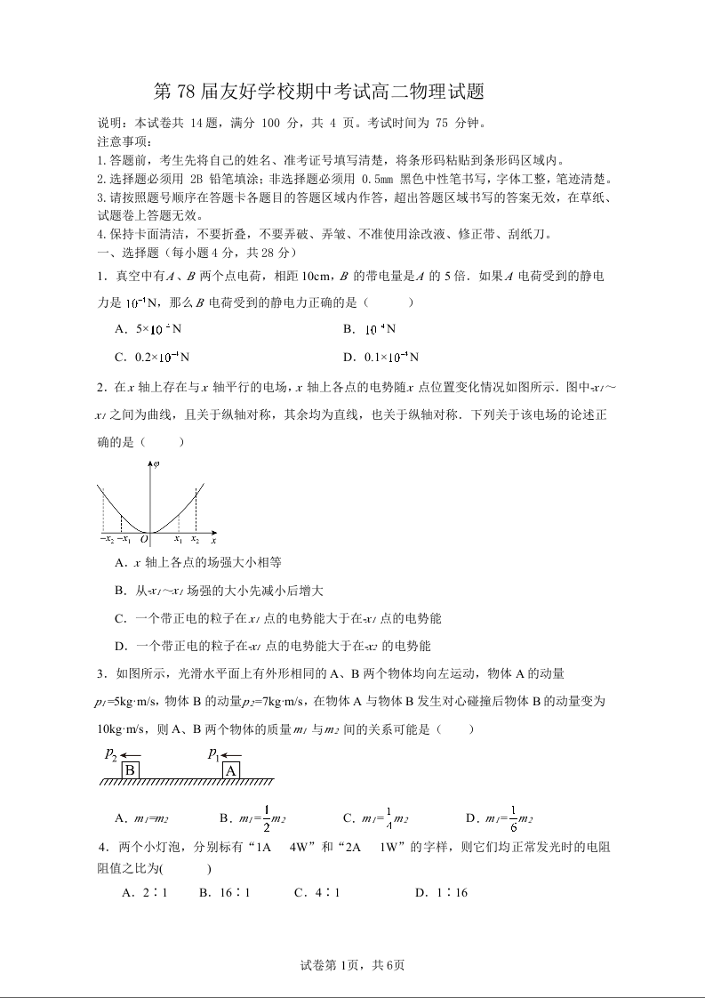 吉林省2024-2025学年度友好学校高二年级期中考卷物理+答案