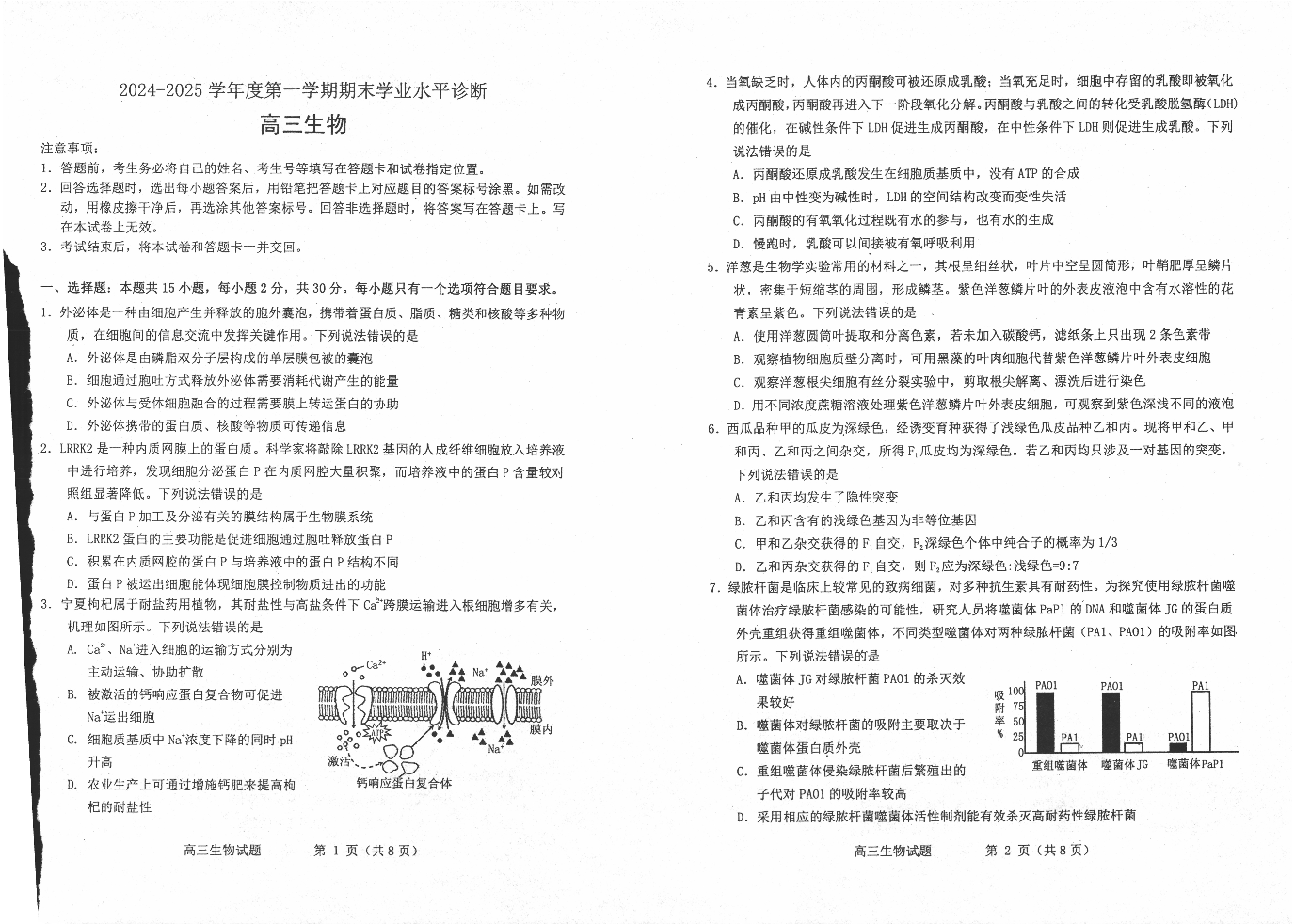 山东省威海市2024-2025学年第一学期1月高三期末学业水平诊断生物